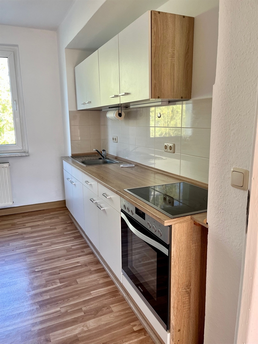 Diese attraktive 2-Raum-Wohnung mit einer Wohnfläche von 53,36 m² besticht durch ihre helle und freundliche Atmosphäre. Das Wohnzimmer ist lichtdurchflutet und bietet direkten Zugang zu einem überdachten Balkon, der zu jeder Jahreszeit zum Entspannen einlädt. Der einladende Flur führt in das geräumige Schlafzimmer, das durch seine freundliche Gestaltung viel Platz für individuelle Einrichtungsideen bietet. Das Tageslichtbad ist mit einer Dusche, einem Handtuchheizkörper sowie einem praktischen Waschmaschinenanschluss ausgestattet. Die moderne Einbauküche verfügt über einen Herd mit Backofen und eine Edelstahlspüle und macht das Kochen zum Vergnügen. Abgerundet wird das Angebot durch einen Kellerraum, der zusätzlichen Stauraum schafft. Die Wohnung eignet sich ideal für Singles oder Paare, die Wert auf Komfort, Helligkeit und eine angenehme Wohnatmosphäre legen.
