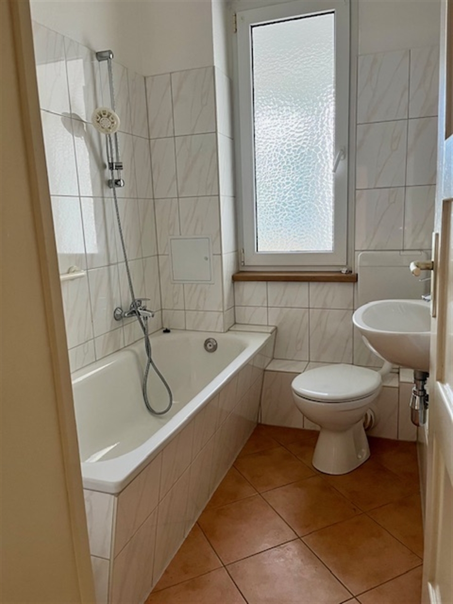 Diese gemütliche 2-Raum-Wohnung im Erdgeschoss bietet auf ca. 50 m² ein angenehmes Wohngefühl in ruhiger Lage. Der helle Wohnbereich ist mit einem pflegeleichten PVC-Boden ausgestattet und bietet ausreichend Platz für individuelle Einrichtungsideen. Von der Küche aus gelangt man auf den überdachten Balkon, der wie ein kleiner Wintergarten gestaltet ist – ideal zum Entspannen bei jedem Wetter. Das geflieste Badezimmer verfügt über eine Badewanne mit Duschbrause. Ein praktischer Abstellraum innerhalb der Wohnung sorgt zusätzlich für Stauraum. Die Wohnung eignet sich perfekt für Singles oder Paare, die eine ruhige, gut geschnittene Wohnung mit gemütlichem Außenbereich suchen.